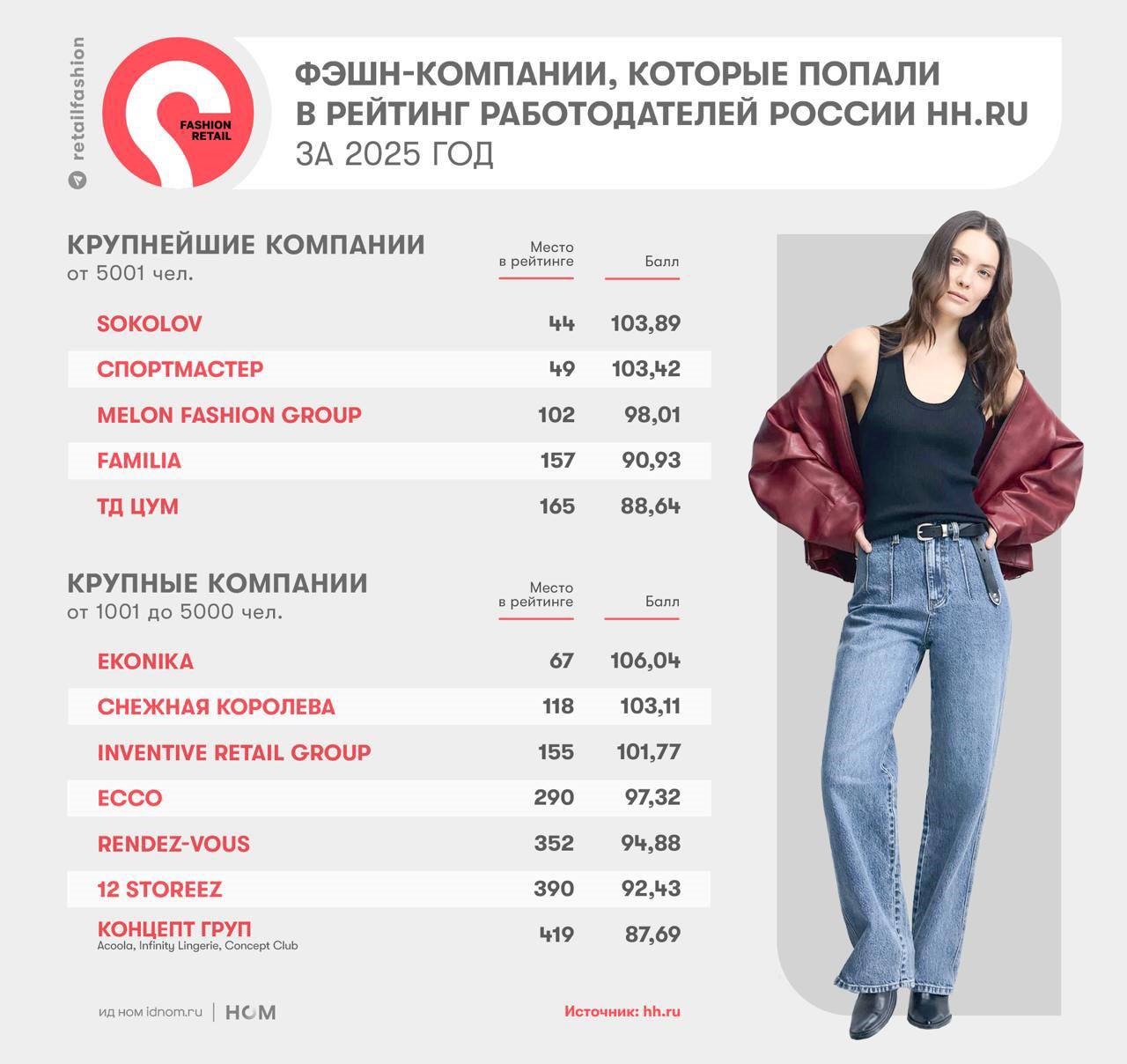 Модная сеть EKONIKA в очередной раз попала в список лучших работодателей страны по версии hh.ru, заняв лидирующую позицию среди компаний fashion-рынка и 67-е место – среди крупных компаний.